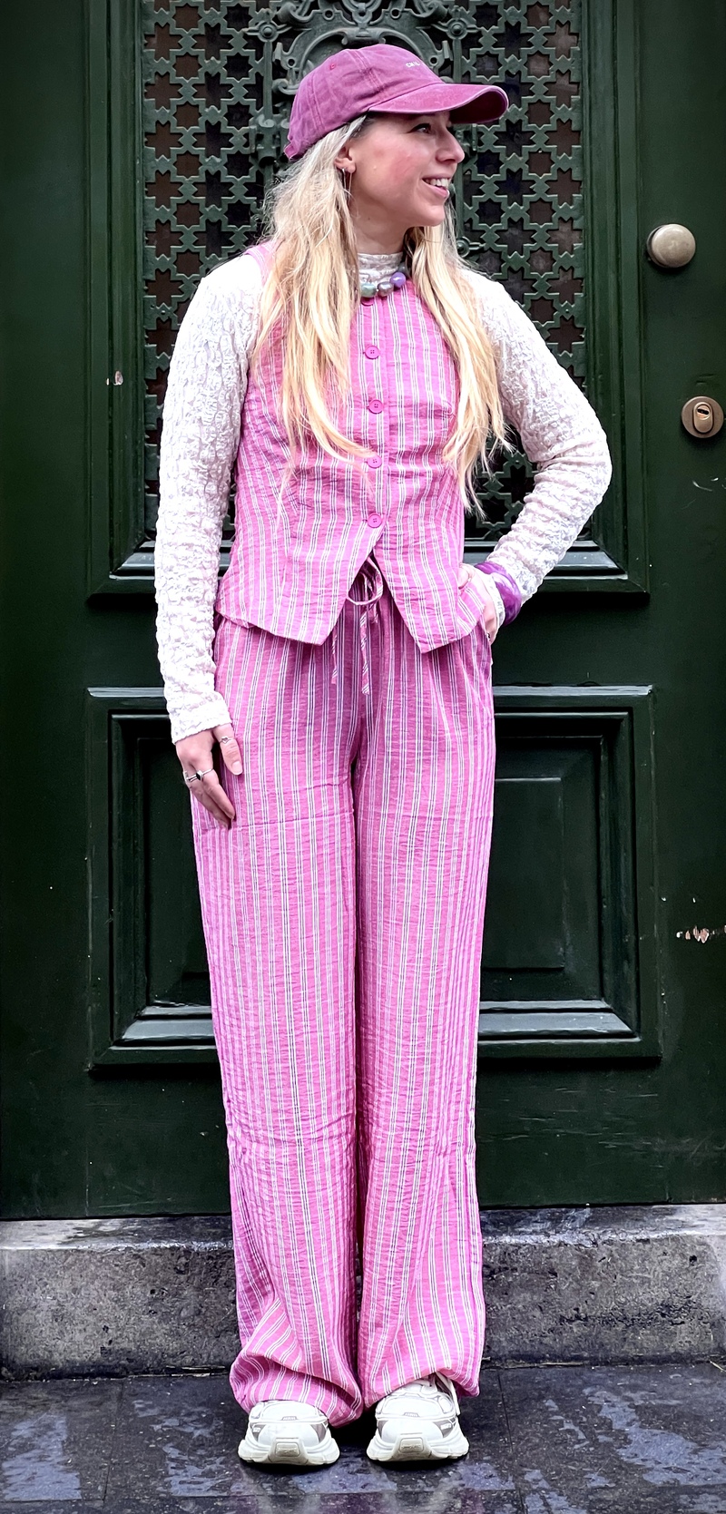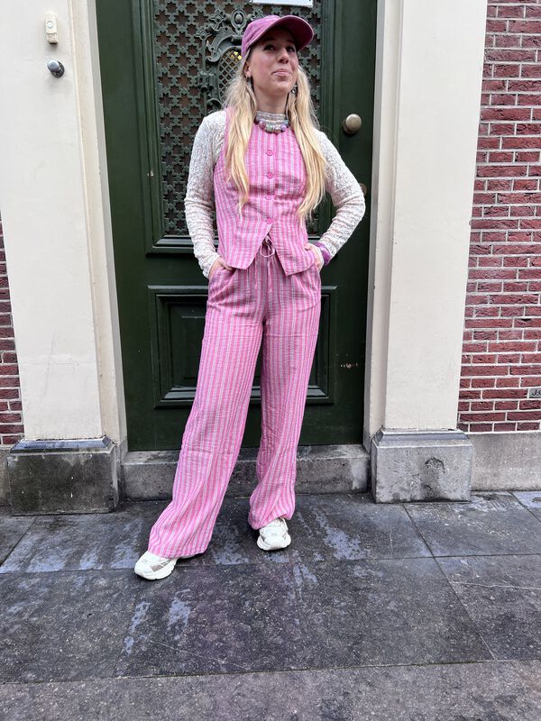 Deze gestreepte wide leg broek heeft een relaxte, rechte pasvorm die mooi langs het lichaam valt. De verticale strepen geven lengte en een speelse, frisse uitstraling. Dankzij de elastische tailleband met striksluiting zit ze comfortabel, zonder in te leveren op vorm.