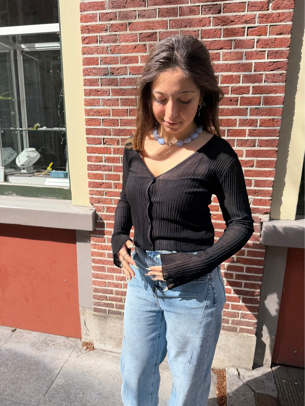 Deze zwarte mesh cardigan is de perfecte mix van stijl en veelzijdigheid. Het luchtige transparante materiaal geeft een subtiele elegante uitstraling en de top sluit mooi aan op het lichaam. De uitlopende mouwtjes zorgen voor een speelse en vrouwelijke touch. De subtiele knoopsluiting zorgt ervoor dat deze cardigan praktisch en stijlvol blijft.