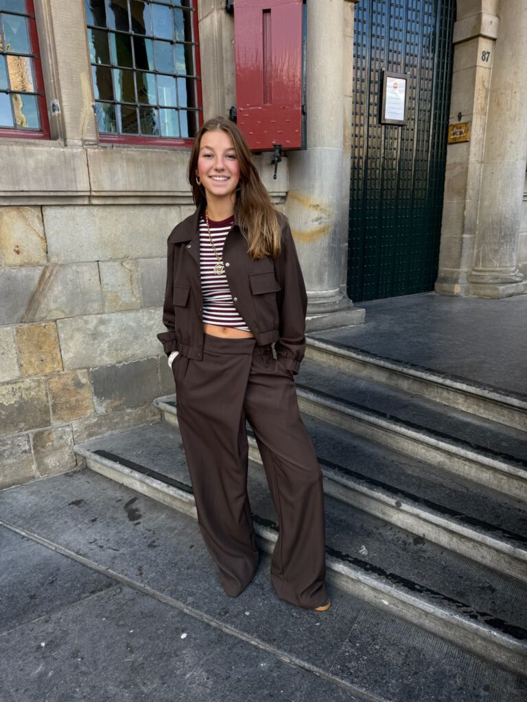 Deze mooie getailleerde blazer is anders dan anders door de schuine knoopsluiting. Draag met een matching broek of een stoere jeans!