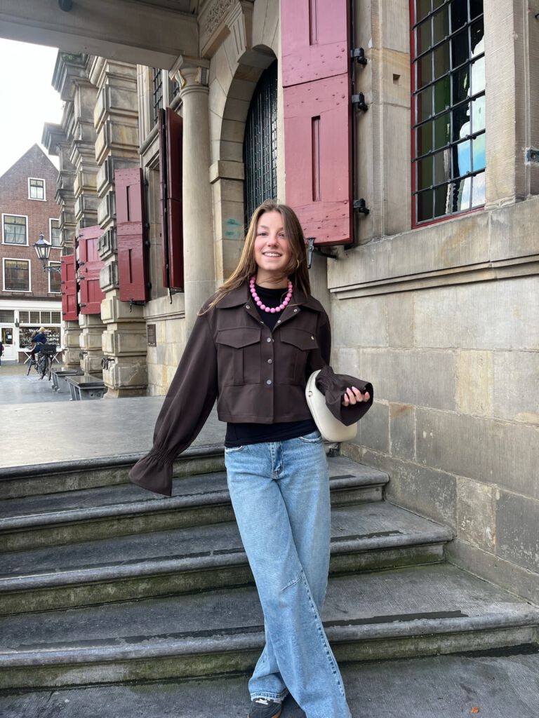 Dit leuke korte jasje past perfect bij onze pantalon broeken. Speels detail bij de mouw. Het jasje heeft knoopsluitingen.