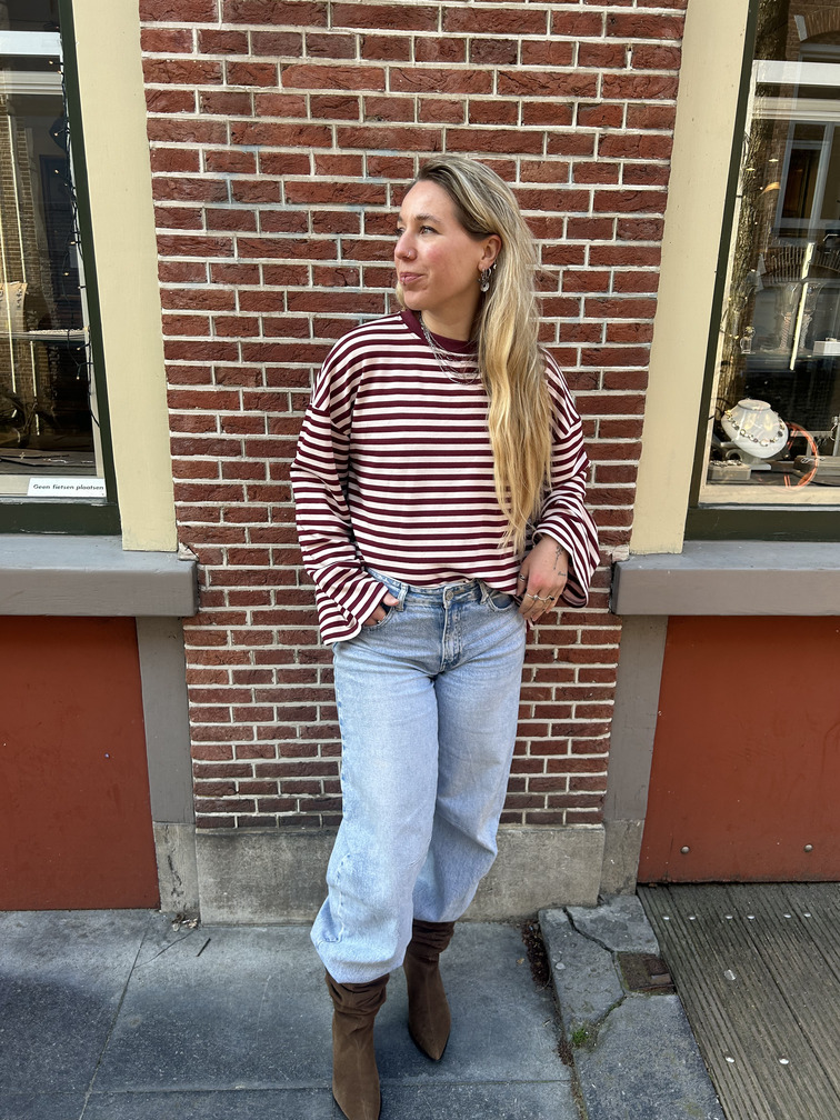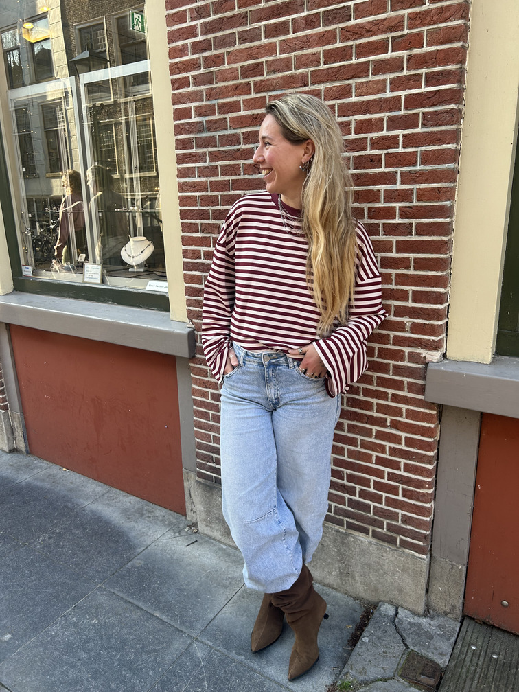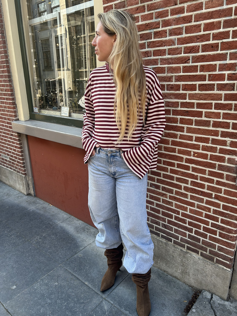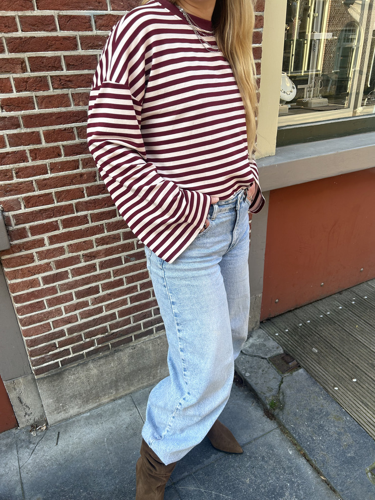 Deze soepelvallende longsleeve in rood met witte strepen is zo’n item dat altijd goed zit. De rechte fit en zachte stof zorgen ervoor dat hij heerlijk zit, terwijl de klassieke streep net dat speelse, modieuse gevoel geeft.