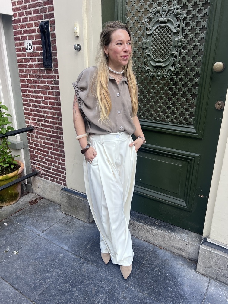 Mix & match en creëer telkens een nieuwe vibe! Of je ‘m nu in of over laarsjes draagt, deze broek past zich moeiteloos aan. Combineer met een wijde jas voor een relaxte feel of met een strakker topje voor een mooie balans tussen speels en vrouwelijk. Wil je iets extra’s met een subtiel detail? Ontdek ook onze Tina broek in crème- of taupekleur met fijne streepjes voor een verfijnde en speelse touch in je look.
