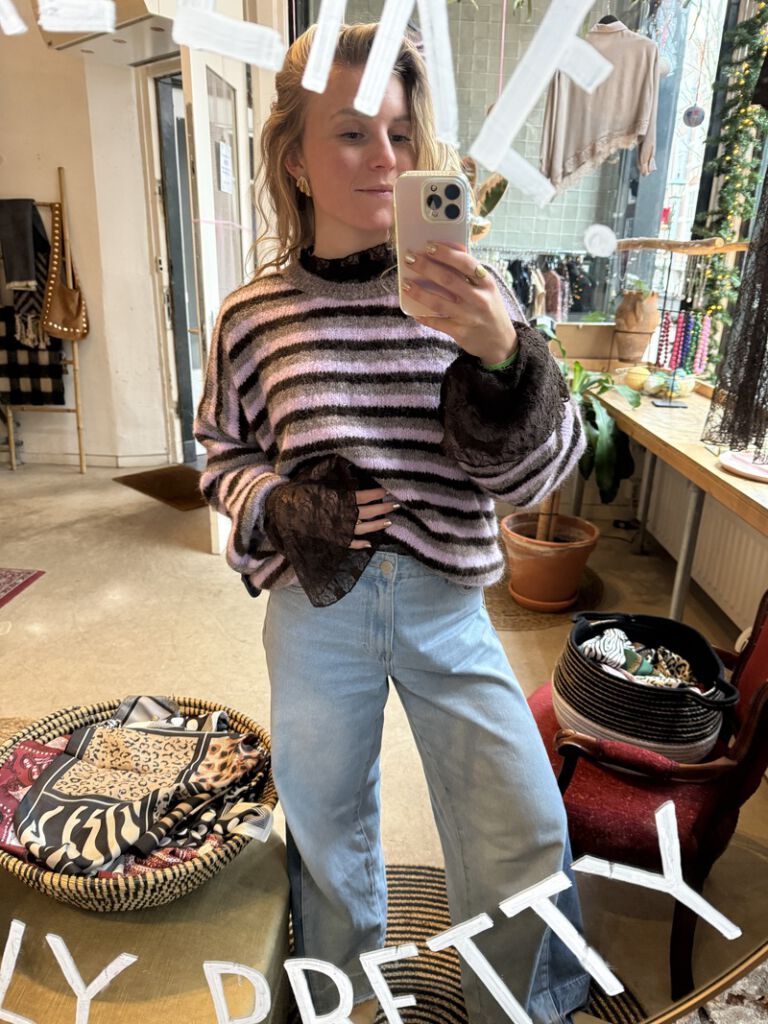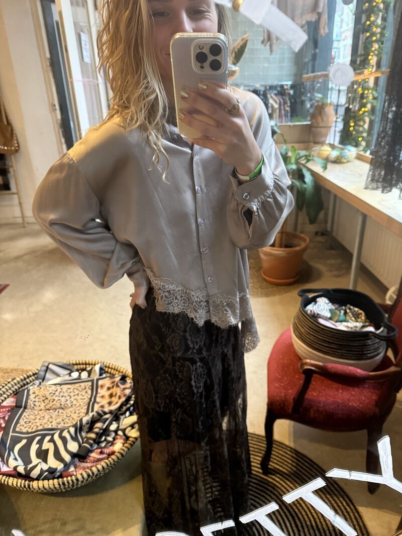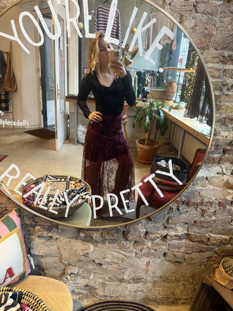 Deze elegante rok hebben we in een bruine en bordeaux tint en kan je dragen met een strak rokje of mini short eronder.