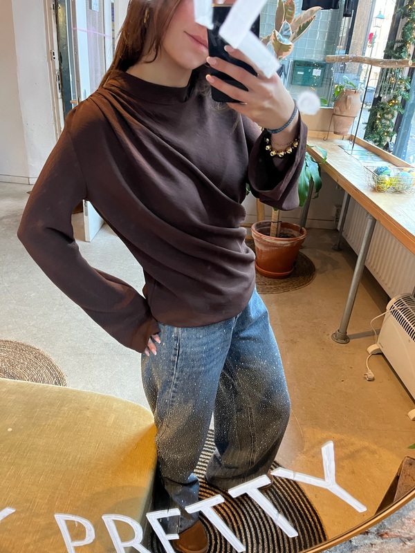 Deze elegante bruine top is perfect voor de feestdagen maar ook voor een chique avondje uit!