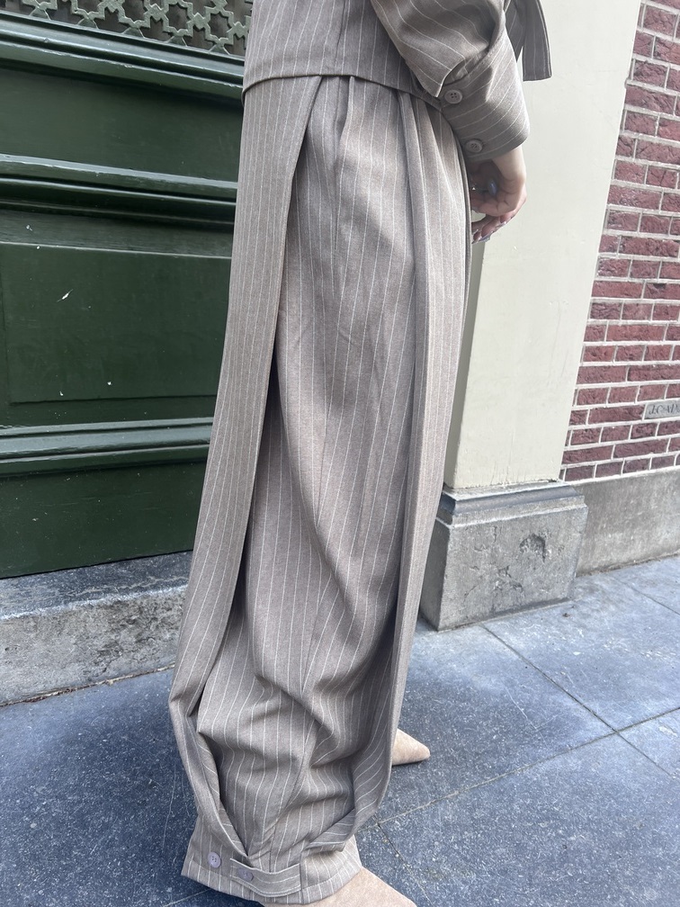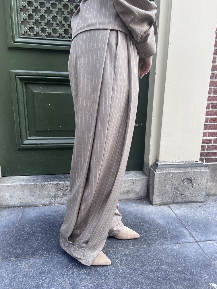 De Tina broek in een zachte taupe kleur is een echte eyecatcher met een stijlvolle twist. De warme, neutrale tint geeft de broek een moderne en makkelijk te combineren uitstraling. De plooien aan de zijkant zijn de details die dit item bijzonder maken en zorgen voor een speelse vorm en een flatterende fit. Dankzij de stretch in de taille zit hij ook nog eens heerlijk comfortabel, zelfs na een lange dag. De knoopdetails bij de sluiting en onderaan bij de plooien geven de broek een subtiele, casual touch en maken ’m net even anders dan een standaard nette broek.