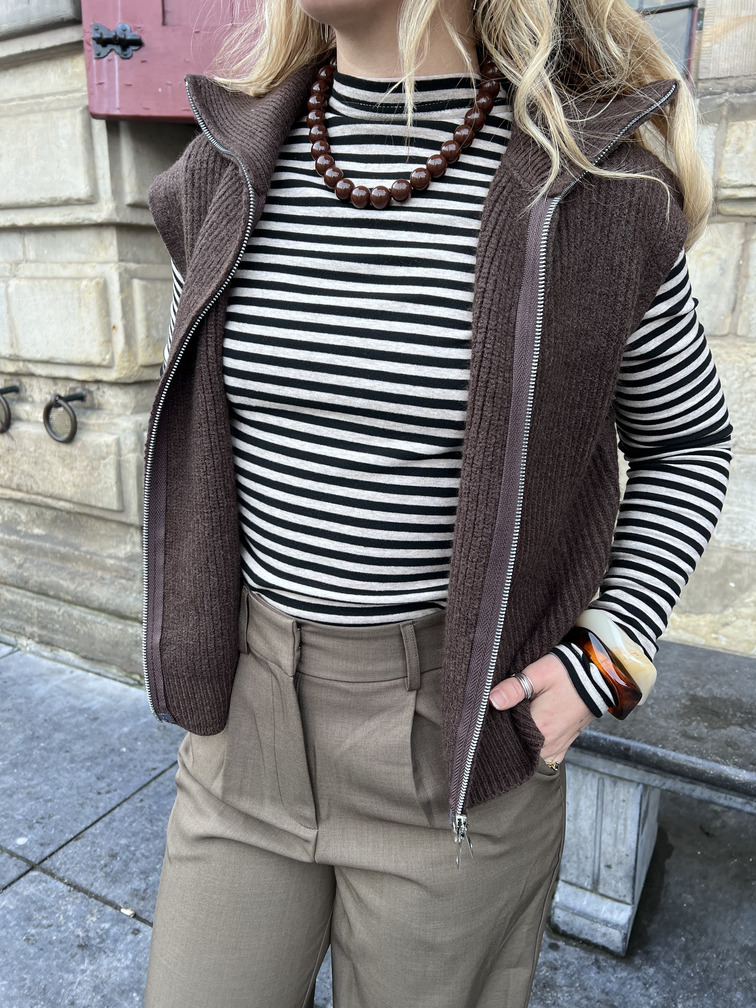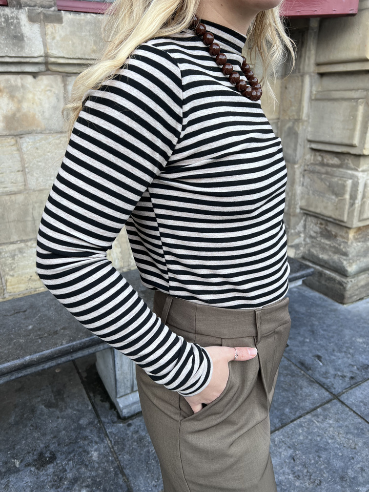 Deze zwart-wit gestreepte top is een tijdloze klassieker. Het model heeft een ronde hals en lange mouwen en is gemaakt van een hele zachte, fijne, stretchy stof. Door het basic design is deze top eindeloos te combineren en geschikt voor elk seizoen. Een onmisbaar item voor een veelzijdige garderobe.