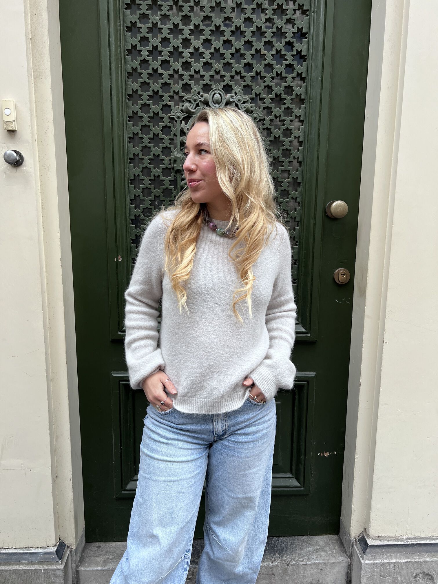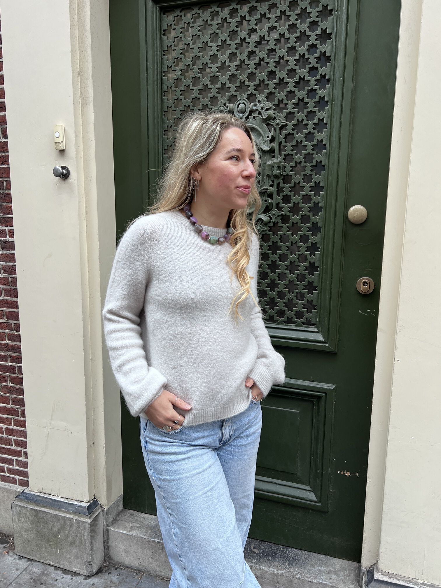 Deze trui is een echte essential voor iedere kast. Gemaakt van een heerlijk zachte stof en een stijlvolle off white kleur, waardoor hij tijdloos is. Dankzij het basic ontwerp is de trui makkelijk te combineren met verschillende looks, van casual tot meer gekleed. De trui heeft een mooie ronde hals en lange mouwen. De one size pasvorm kan gedragen worden van een XS t/m L. Een comfortabele must-have die je het hele seizoen door kunt dragen.